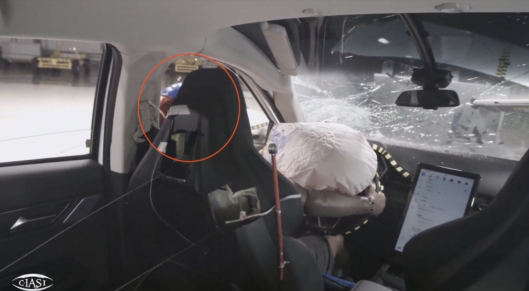 在碰撞完成后,安全带对于假人的约束不够,导致假人头部往后“回弹”的时候后脑勺有可能撞到门框,因此尽管小鹏G3的车身强度足够,但是也只能获得A的评价,这也是吃了最低配车型没有侧气帘的亏啊!(G3从次低配起才有侧气帘)